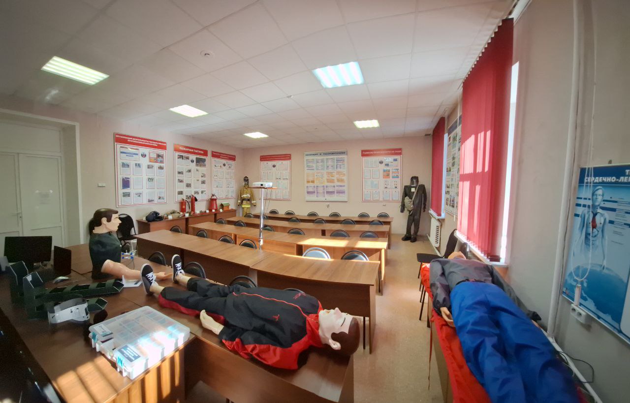 Расположена на первом этаже здания Центра. Предназначена для проведения занятий по индивидуальной и коллективной защите населения, отработке практических навыков с использованием средств индивидуальной защиты и приборов радиационно-химической разведки и дозиметрического контроля, оказания первой помощи, обучения слушателей требованиям охраны труда и пожарной безопасности. Оснащена комплектом мультимедийного оборудования, СИЗ, Тренажером-манекеном Роман-11 для отработки СЛР с планшетным компьютером и настенным табло, тренажером сердечно-легочной и мозговой реанимации пружинно-механического типа "Максим I-01".