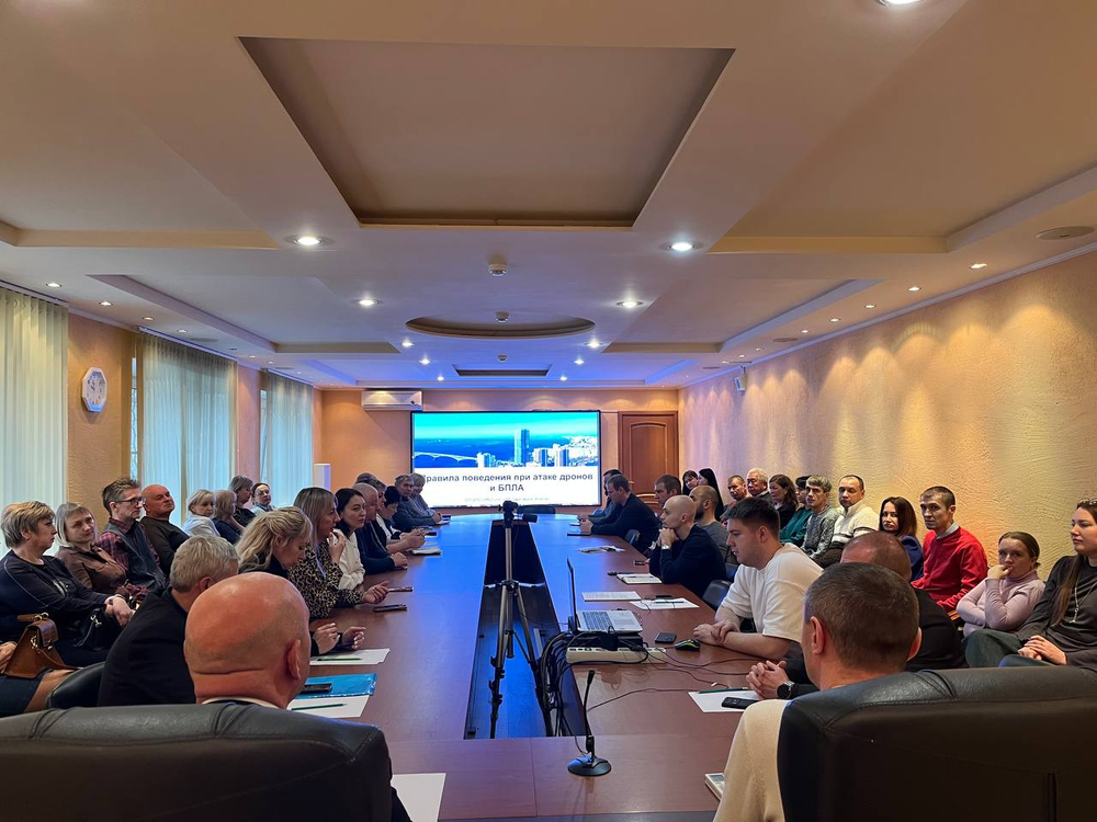 От учебного центра в рабочих совещаниях принял участие специалист Яковлев Р.Б., который подробно довёл до представителей жилищно-эксплуатационных организаций ключевые действия при угрозах, связанных с применением беспилотных летательных аппаратов, порядок оперативного и
