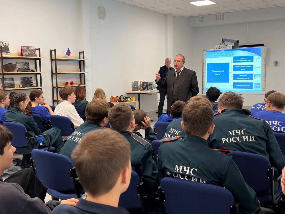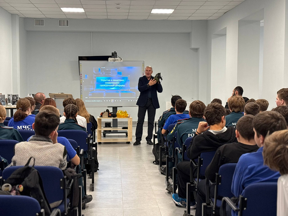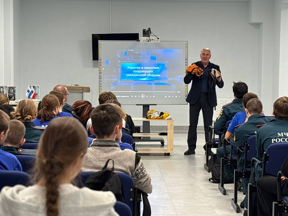 Учащиеся 7–8 классов познакомились с основными способами защиты населения и территорий при возникновении ЧС и в военное время, сигналами оповещения и порядком действий по ним, а также действиям при возможных атаках беспилотных летательных аппаратов. Кроме того, ребятам рассказали о защитных сооружениях гражданской обороны — убежищах, противорадиационных и простейших укрытиях.