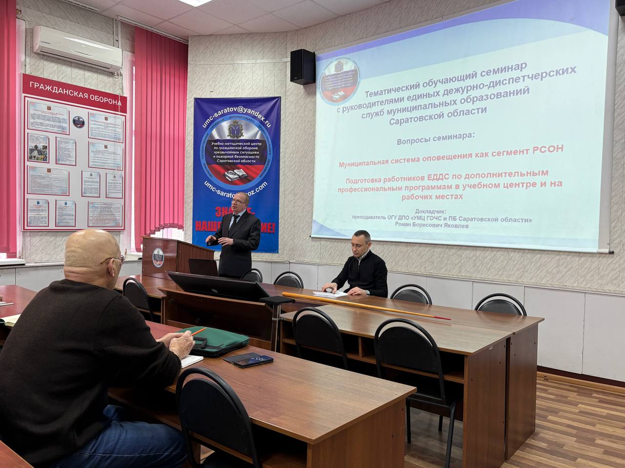 13 февраля на базе учебного центра состоялся тематический обучающий семинар с руководителями единых дежурно-диспетчерских служб муниципальных районов Саратовской области.