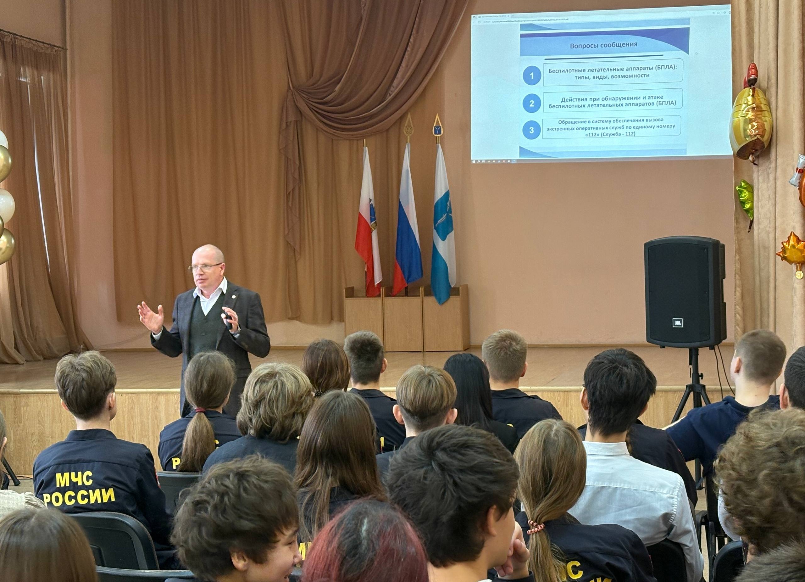 Яковлев Р.Б. рассказал о правилах безопасности при обнаружении беспилотных летательных аппаратов и дал практические рекомендации по действиям в подобных ситуациях. Он также объяснил особенности работы системы обеспечения вызовов экстренных оперативных служб по единому номеру «112», включая правила правильного взаимодействия с операторами в экстренных случаях.