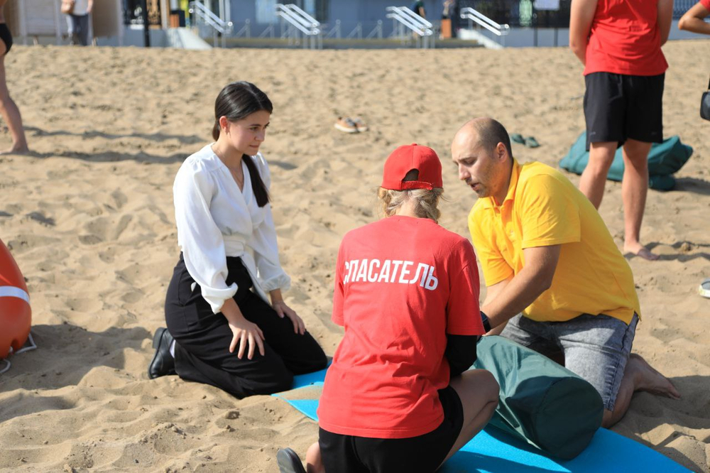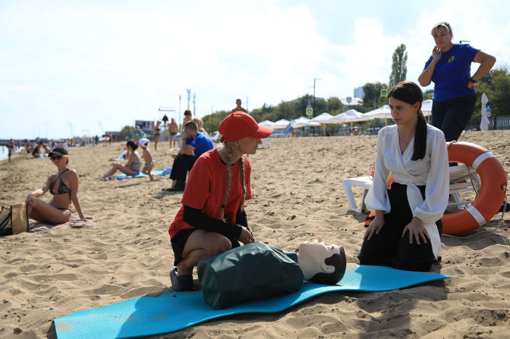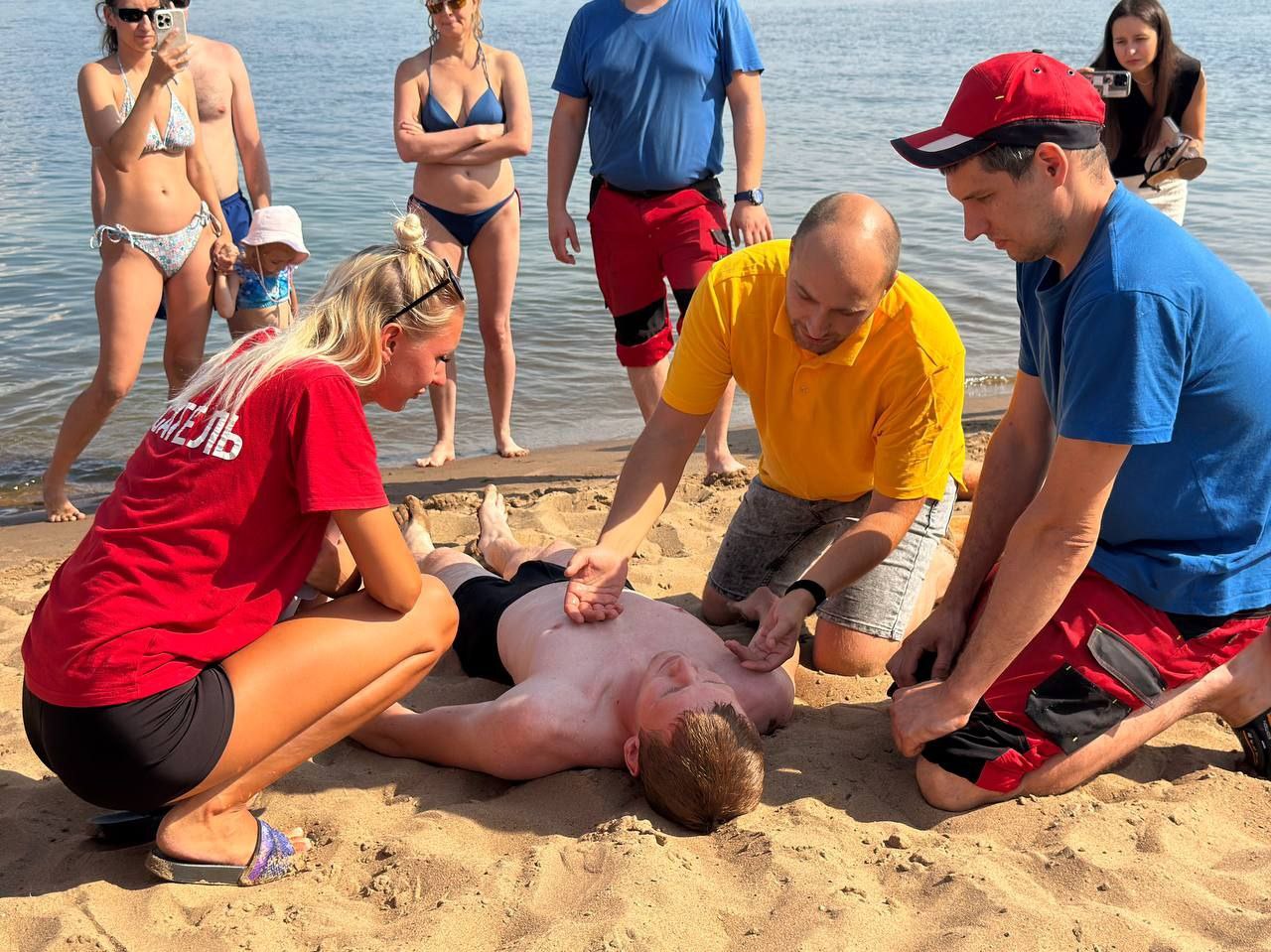 Специалист учебного центра Конакова З.В. провела для матросов-спасателей и отдыхающих пляжа мастер-класс по оказанию первой помощи, в ходе которого обсудили вопросы по спасению утопающего из воды и оказанию ему первой помощи до приезда медиков. Были продемонстрированы правила извлечения пострадавшего на берег и наглядно показан алгоритм реанимационных действий при спасении человека. Все желающие отработали навыки проведения сердечно-легочной реанимации на тренажере-манекене.