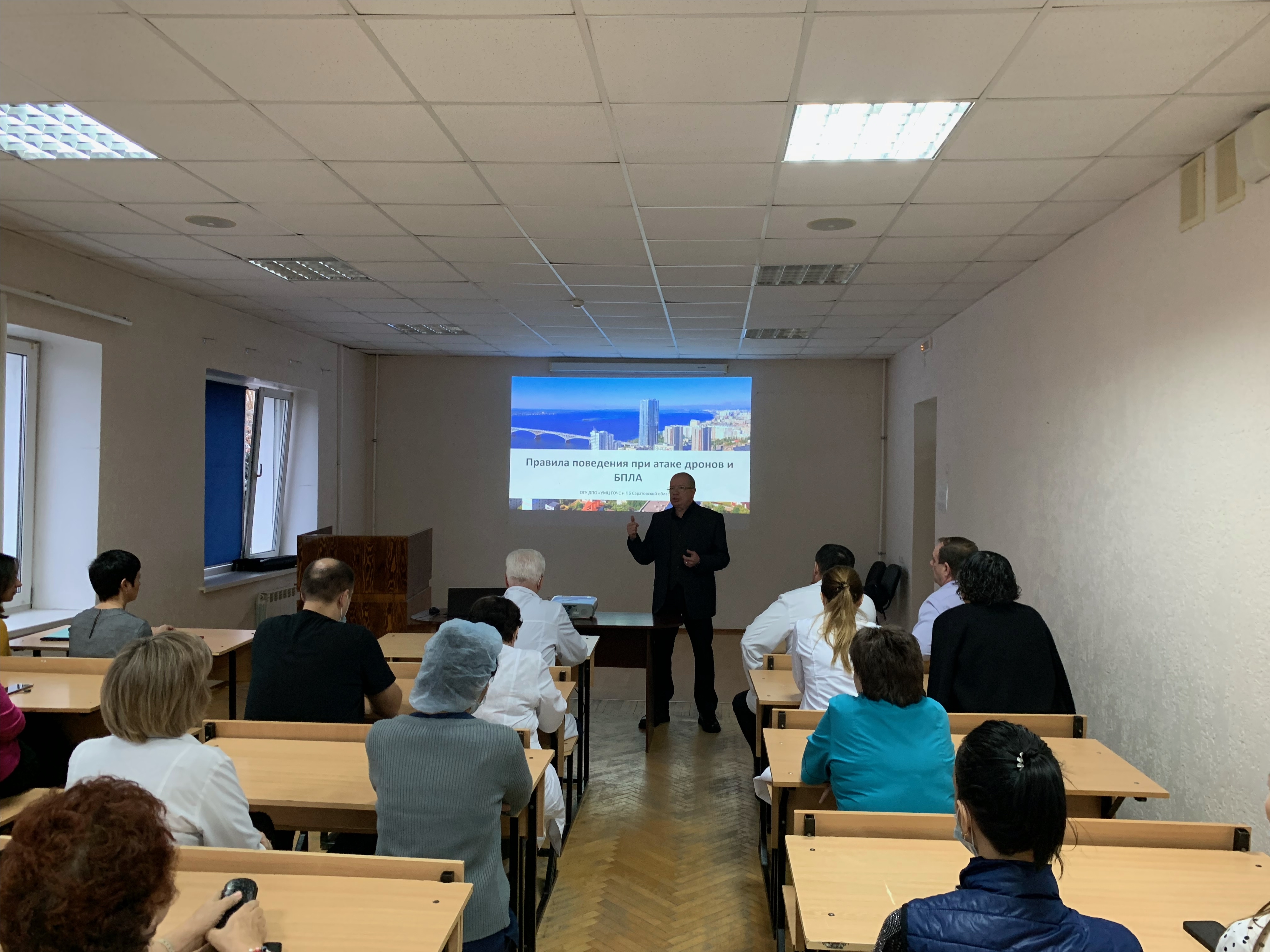 Сегодня в поликлиническом отделении №1 ГУЗ «Саратовской городской клинической больницы №5» было проведено выездное занятие по теме «Правила поведения при угрозе БПЛА».
